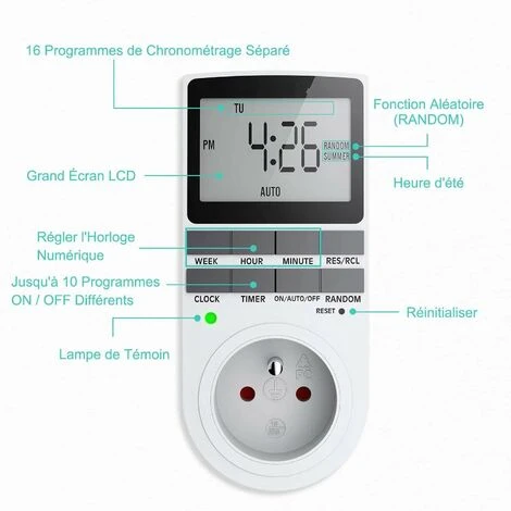 - Breites Anwendungsspektrum – Großes LCD-Display für bessere Sichtbarkeit und einfache Einstellung. Smart Plug, ideal für die Beleuchtung zu Hause, Weihnachtsbeleuchtung und -dekoration, Küchengeräte, Aquarienbeleuchtung und andere Haushaltsgeräte, um Energieeinsparungen zu maximieren und die Arbeit zu vereinfachen. Wenn Sie eine Mitteilung auf Französisch benötigen oder Fragen haben, zögern Sie nicht, den Verkäufer zu kontaktieren.