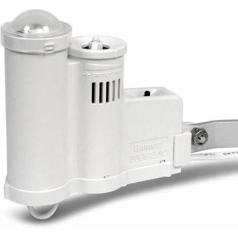Der kabelgebundene Solar Sync ET-Wettersensor ist mit den meisten Steuergeräten von Hunter kompatibel und bietet die Möglichkeit die Hunter Steuergeräte täglich basierend auf aktuellen und lokalen Wetterbedingungen anzupassen. Der Wettersensor verwendet die Evapotranspiration (ET) und misst zusätzlich die Temperatur sowie das Sonnenlicht, um auf Grundlage dessen einen optimalen Anpassungswert zu ermitteln. Dieser Prozentwert wird im Anschluss an das Steuergerät gesendet, um die programmierte Laufzeit zu korrigieren.