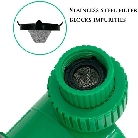 Impermeable y sellado —Con una cubierta de plástico, el temporizador del aspersor es completamente resistente al agua y se puede usar al aire libre, asegúrese de que la cubierta esté atornillada en días de lluvia. También contiene un filtro de acero inoxidable para evitar que se obstruya.