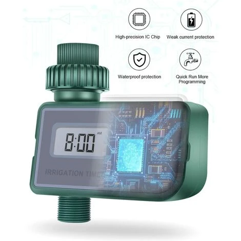 Wasserdichtes und wasserdichtes Design – Unser Bewässerungstimer ist IPX6 Wasserdichtes und wasserdichtes Batteriegehäuse, der Rasentimer ist für 3/4-Zoll-Wasserhähne geeignet (auch mit 1/2-Zoll-Wasserhahn erfüllt Ihre zusätzlichen Anforderungen) und verhindert mit einem zusätzlichen Streifen das Austreten von Wasser während des Gebrauchs.