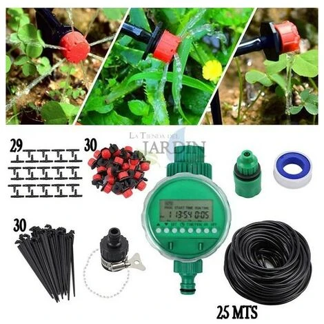 - Das neue DIY-Tropfset enthält: 1 Bewässerungstimmer + 2 Steckverbinder + 4 mm 25 m Wasserschläuche + 30 einstellbare Tropfer + 30 T-Steckverbinder + 30 einfache Haken + 1 Teflonband.