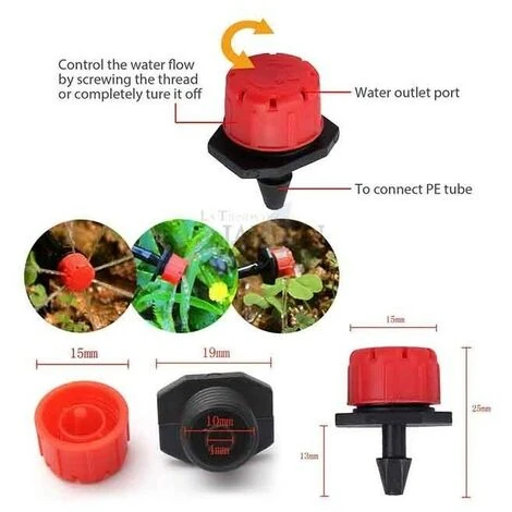 - Der rote Tropfer mit einer Durchflussrate von 0 bis 50 l / h kann den Wasserdurchfluss an den Wasserbedarf verschiedener Anlagen anpassen, und die Düse kann auch das Wasser absperren.