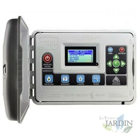 - El programador EVOLUTION de Toro es un programador de riego único, diseñado para ayudarle a responder a las necesidades de sus clientes residenciales y comerciales. incorpora un exclusivo sistema de menús intuitivos para una programación sencilla con indicaciones en pantalla fáciles de entender. Los botones de atajo permiten acceder rápidamente a las funciones de riego básicas, mientras que el menú avanzado ofrece acceso a funciones especiales.
