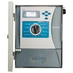 Bewässerungssteuerung mit 8 Stationen, erweiterbar auf 54 Zonen mit Modulen von 4, 8 und 22 Stationen.