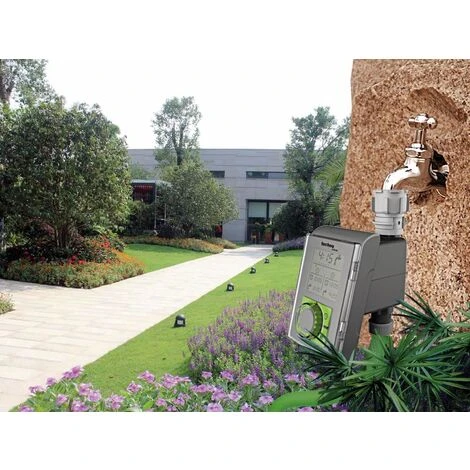 Die praktische Bewässerungsuhr wird einfach am Wasserhahn angeschlossen und steuert die Bewässerung des Gartens vollautomatisch über einen angeschlossenen Regner, einem Tropfbewässerungssystem oder einer Sprinklersystemanlage. Die Bewässerungsuhr ist mit einer Überwurfmutter für Wasserhähne mit 33,3 mm (G 1″)-Gewinde ausgestattet. Im Lieferumfang ist ein Adapter, der den Anschluss der Bewässerungsuhr an Wasserhähne mit 26,5 mm (G ¾)-Gewinde ermöglicht. Features: – Automatische, zeitsparende Bewässerung – Einfache Programmierung – Flexible Bewässerungssteuerung – Sicherer Betrieb – Manuelle Wasserentnahme per Knopfdruck – Batteriezustandsanzeige Technische Daten: – Betriebsspannung: 2x AA Mignon Batterie (Inkl.) – Anzahl programmgesteuerter Bewässerungsvorgänge je Woche: 14 – Bewässerungsvorgänge pro Tag: 2 – Bewässungsdauern: 1 min bis 24 h – Betriebsdruck: 0,34…8,27 bar – Sensoranschluss: nein – Gewinde: für Wasserhähne mit 26,5 mm (G ¾) und 33,3 mm (G 1) Lieferumfang: – Bewässerungscomputer – Kupplung – Adapter – Filter – Anleitung