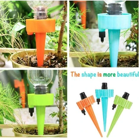 Einfach zu verwenden: Pflanzen Sie selbstbewässernde Spikes ohne lästige Installation, alles für Sie Sie müssen lediglich ein Loch in den Boden der Flasche schneiden, die Tropfbewässerungsvorrichtungen festziehen und sie dann ohne Nagel und ohne Risiko in den Boden treiben. (Hinweis: Die Verwendung großer Flaschen sollte korrigiert werden, ein Holzstab kann angebracht werden.)